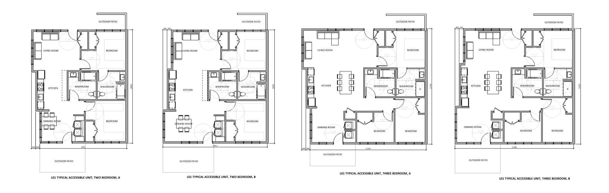 Fig 3: Floor plans for 2 & 3-bedroom accessible units.