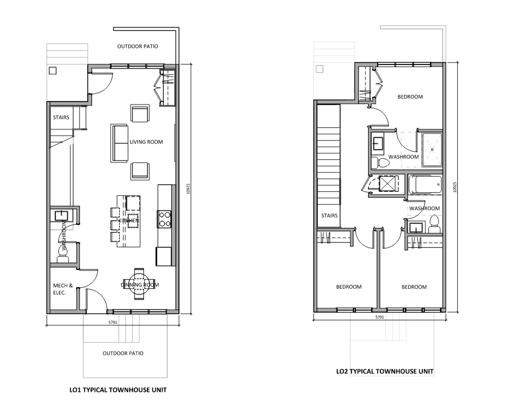 Fig 2: Floor plans for typical townhouse layouts.
