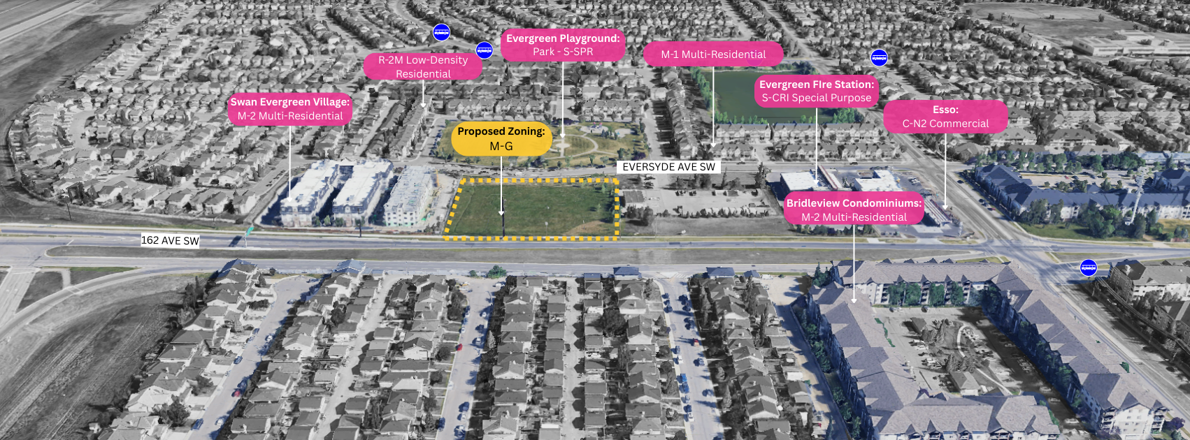 The site at 2525 Eversyde Avenue SW is well-positioned to support the goals of Calgary’s Municipal Development Plan (MDP), the Calgary Transportation Plan (CTP). Located in a pre-established neighbourhood near the Southwest Bus Rapid Transit (BRT) corridor (MAX Yellow) and major community amenities, the site benefits from existing infrastructure, schools, parks, and retail services. This makes it an ideal location for low to medium-density housing development that supports a complete, connected, and sustainable community.