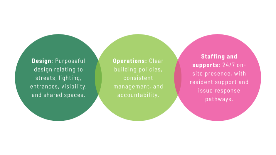 It’s normal for people to have questions about how supportive housing affects safety, public spaces, and daily life nearby. Safety is addressed through three components that work together:
