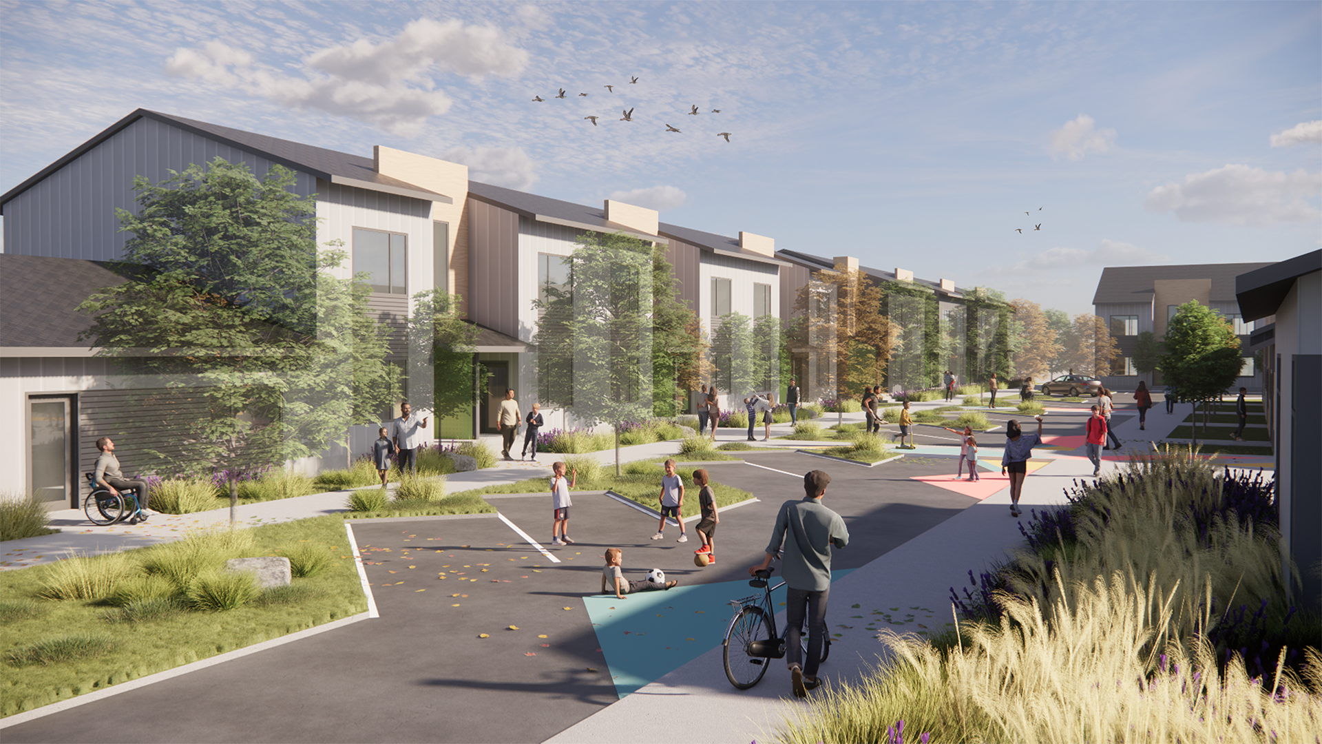 Rendering of transitional family townhomes at 225 Eversyde Ave SW.